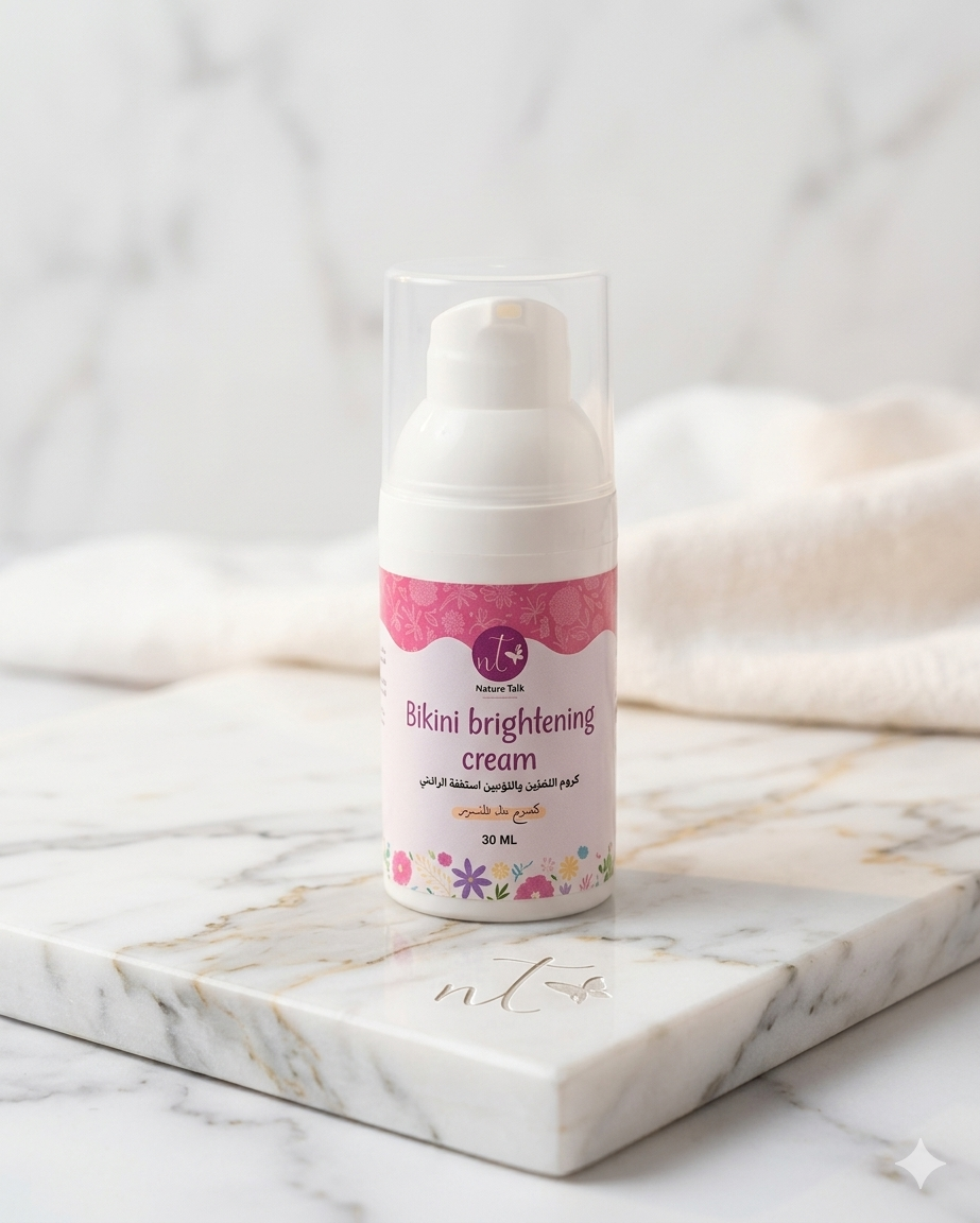 كريم Bikini Brightening من Nature Talk للتفتيح العميق. تركيبة بأكثر من 3 مواد فعالة لتوحيد لون المنطقة وتقشيربلطف ونعومة فائقة.