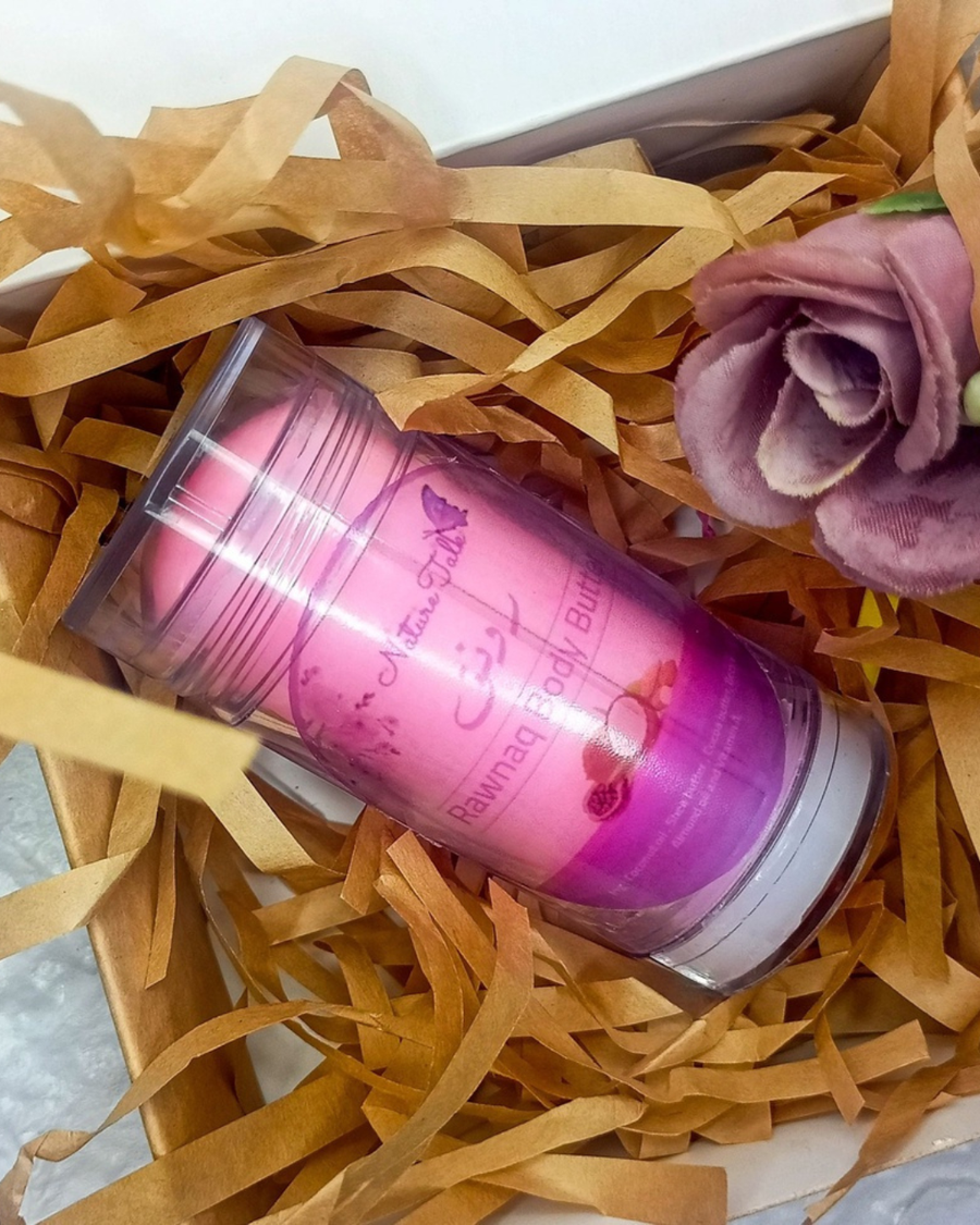 زبدة جسم زيتية من Nature Talk بـ 5 روائح فاخرة. ترطيب طبيعي 100% بالشيا والكاكاو، سريعة الامتصاص بدون ملمس دهني لبشرة ناعمة ومعطرة.