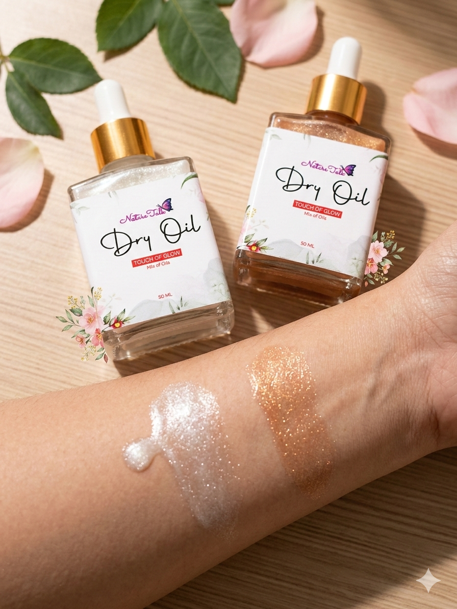 استعدي لإبهار الجميع بإشراقة مذهلة مع زيت الجسم الجاف (Dry Oil) المزود بلمعة "شيمر" فائقة النعومة.