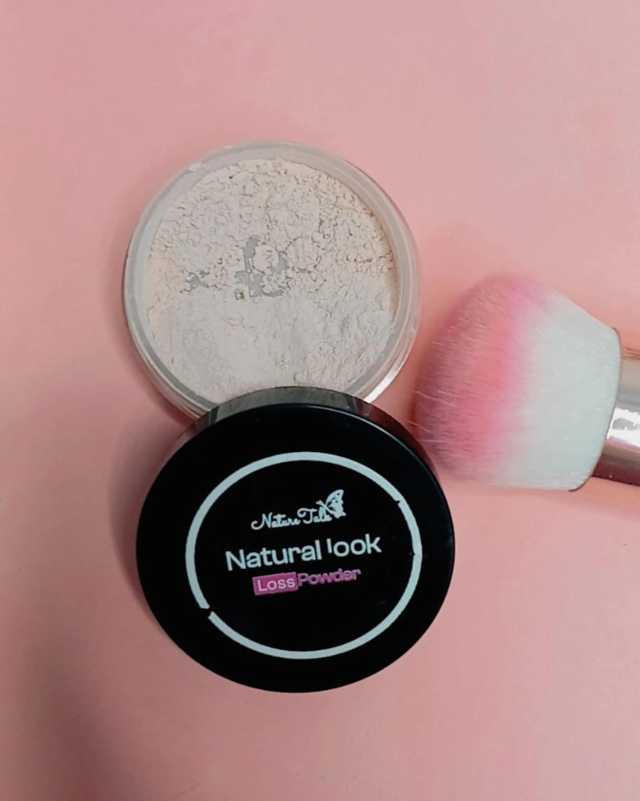لوس بودر طبيعية من Nature Talk. تثبت المكياج، تمتص الزيوت الزائدة، وتمنحكِ لمسة مطفية (Matte) بدون سد المسام. آمنة للبشرة الحساسة.
