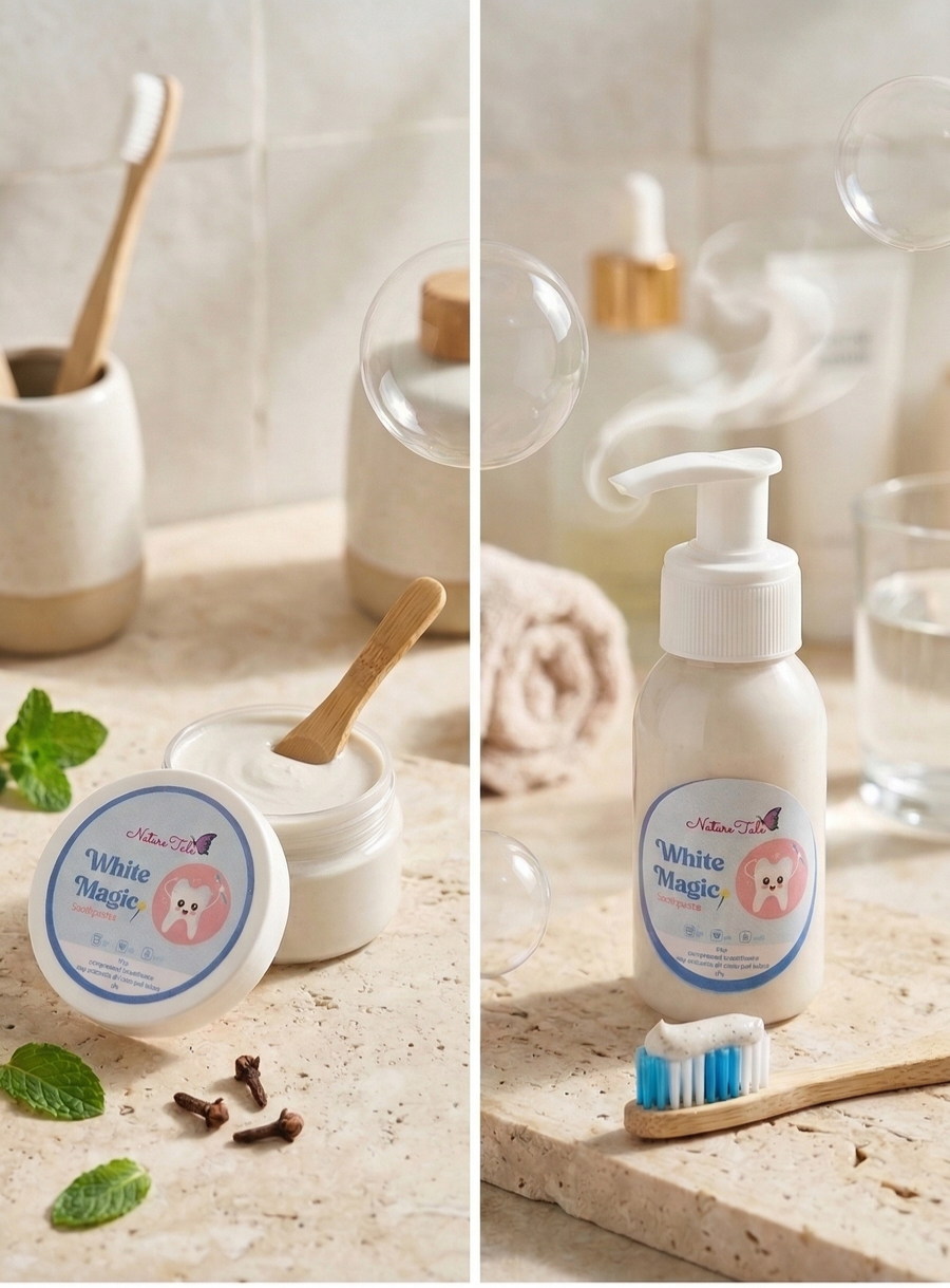 معجون الأسنان الطبيعي بتركيبته المبتكرة التي تجمع بين قوة التنظيف ولطف المكونات الطبيعية.